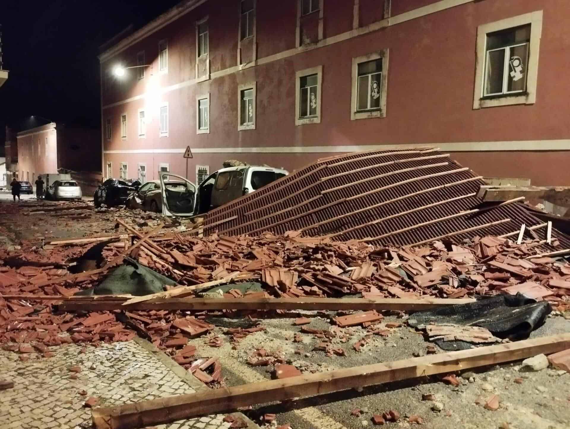 Na Figueira da Foz, a roda gigante, um divertimento na marginal, caiu durante a madrugada de hoje e, à passagem da depressão Kristin, também parte do telhado da antiga Universidade Internacional caiu e atingiu, pelo menos, sete carros.