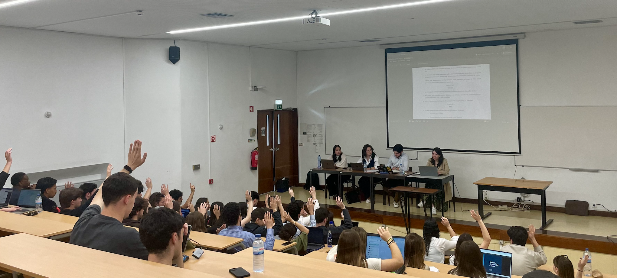 Na sala, no momento da discussão e votação estavam presentes 56 estudantes: 55 votaram a favor, registando-se uma abstenção.